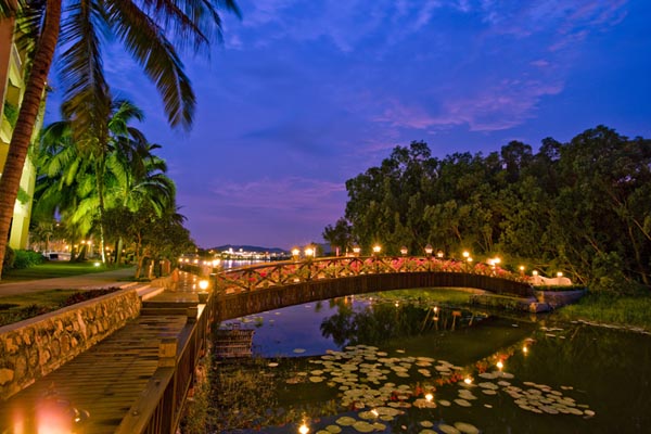 三亞金棕櫚度假酒店座落在亞龍灣最中間的位置,大!频杲ㄖ礃(gòu)成了“三位一體”的酒店格局。三亞金棕櫚度假酒店大堂觀海視野開闊,180度海景一覽無余。酒店既有沙灘又有湖泊,讓您既可以在大海戲水又可以在湖泊垂釣,是亞龍灣擁有空中花園、海景、湖景角度均佳的酒店,客房景致無論海景還是湖景都非常賞心悅目,魚和熊掌兼得。