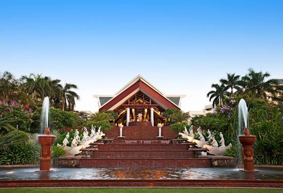 三亞喜來登度假酒店擁有得天獨(dú)厚的地理位置,位于亞龍灣的中心,正對亞龍灣高爾夫球場。湛藍(lán)的大海和銀白的沙灘是海洋生物棲息繁衍的天堂和戶外娛樂活動的理想之地。酒店距離三亞鳳凰機(jī)場30分鐘的車程,離三亞市中心僅一石之?dāng)S的距離。三亞喜來登度假酒店每間舒適豪華的客房均配有空調(diào)、電子保險(xiǎn)箱、迷你吧和衛(wèi)星電視,從客房可觀賞到壯觀的南中國海景、花木蔥蘢的熱帶花園、環(huán)礁湖泳池或18洞的亞龍灣高爾夫俱樂部。三亞喜來登度假酒店餐飲服務(wù)設(shè)施種類繁多,設(shè)有瑤池西餐廳、香料園亞洲餐廳、白云閣中餐廳、池畔吧、美景臺大堂吧、桑吧葡萄酒吧等,時(shí)尚入流,充分融合了亞歐菜肴特色。三亞喜來登度假酒店擁有亞龍灣面積最大的宴會廳,可容納1400人,宴會廳與會前接待區(qū)毗鄰繁茂的花園,是舉辦餐前雞尾酒會的理想場所。與宴會廳搭配的還有16個(gè)會議廳,均裝備最先進(jìn)的影音設(shè)施。度假村前的銀白色海灘綿延350米,康樂中心為您安排了一系列別具一格的娛樂活動,如摩托艇沖浪、滑水、航海、HOBIE、CATS、獨(dú)木舟、深海捕魚、潛水、香蕉船,還可以加入觀賞日落的海上巡游。其它運(yùn)動項(xiàng)目還有沙灘排球、足球、籃球、登山、攀巖、攀越障礙、慢跑和自行車道、燈光網(wǎng)球場等。此外,三亞喜來登度假酒店spa為您提供各種舒緩壓力、安心靜性的療養(yǎng)服務(wù),包括中國推拿、按摩、瑞士芳香按摩以及全套美容方案和精油按摩。